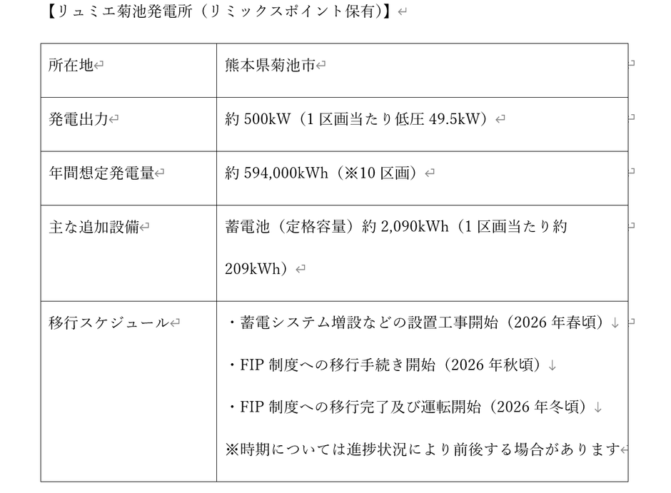 当社が保有する鹿児島県志布志市の低圧太陽光発電所10区画と、リミックスポイントが保有する熊本県菊池市の10区画を対象に、FIT制度からFIP制度への移行を見据えた運用を、リミックスポイントがアグリゲーターとして行います。運用はTensor Energyが提供するTensor Cloudを用いて行います。