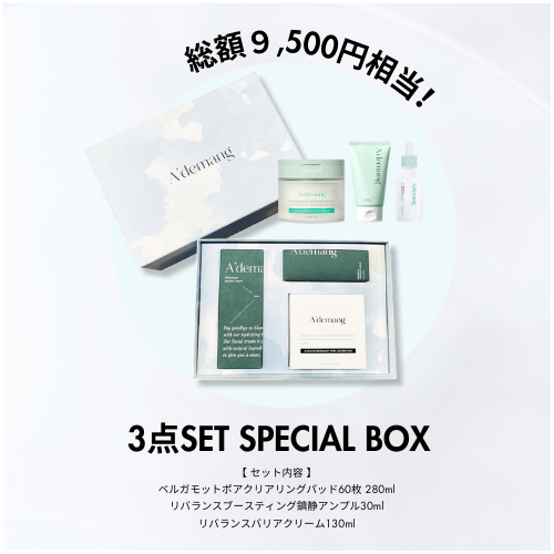 A'demangのレアアイテム、トナーパッドが必ずセットに入る限定アイテム!韓国有名ビューティーインフルエンサーArang氏×消費者×A'demangで開発したトナーパッドは、大容量で大判!ヴィーガン認証もあり、肌タイプに合わせて2種類から選べます。