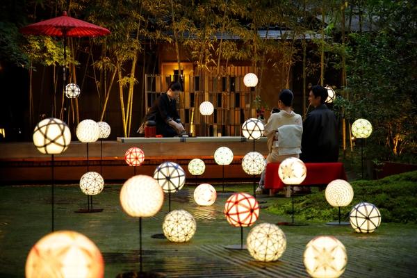 【星のや京都】手まりを模した灯りが奥の庭に並ぶ「星のや手まり茶会」開催~毎週土日には琴の生演奏も~|期間:2021年12月15日~2022年2月13日