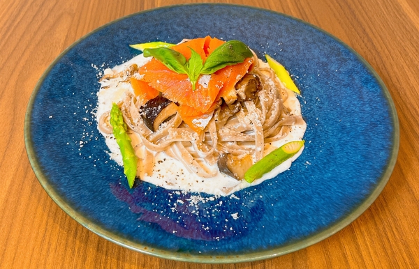 信州スモークサーモンの 芳醇クリーム蕎麦パスタ