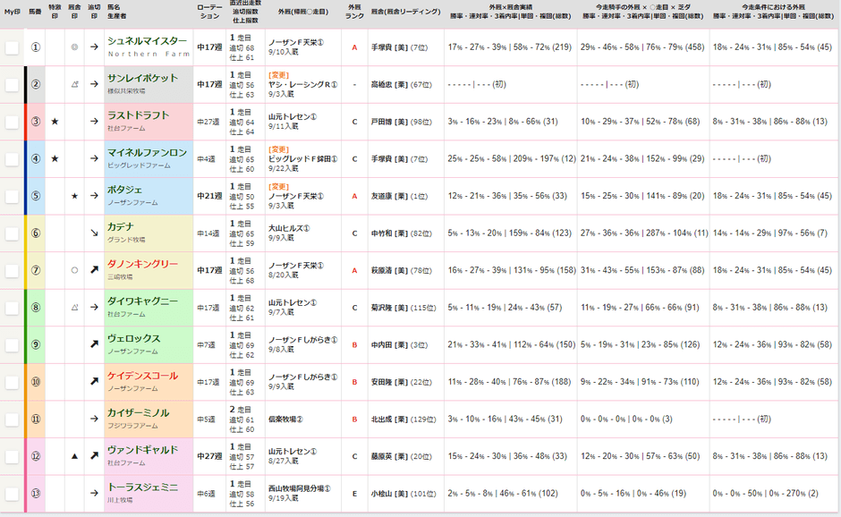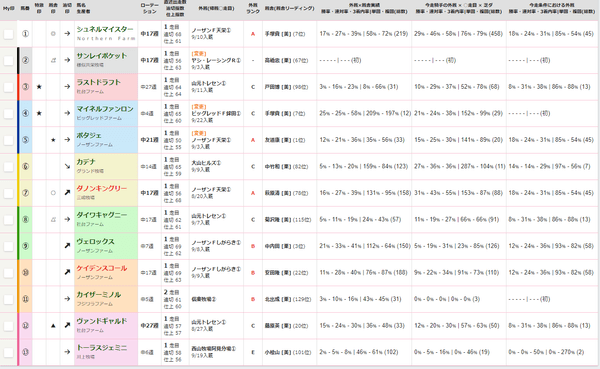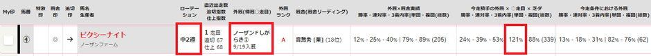 厩舎×外厩の成績を記載
