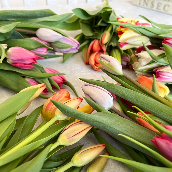 富山県の県花でもあるチューリップは、葉っぱの枚数や花丈、茎の曲がりや花の大きさ等、より美しいお花を届けるために高い基準を設けられ、規格に満たないと市場に出荷されません。