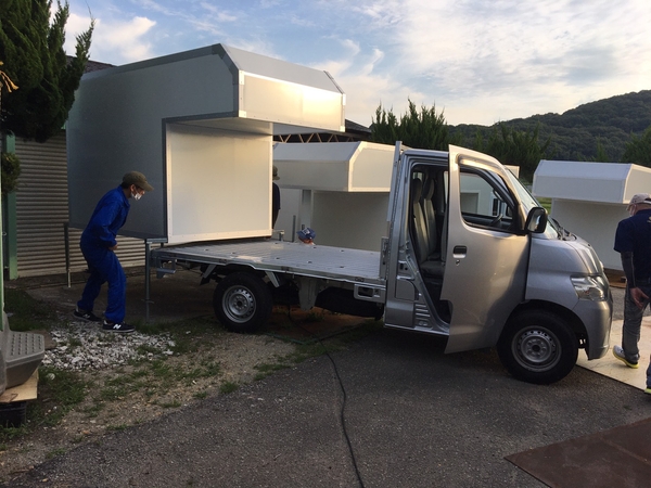 2.着脱式キッチンカーなので、降ろして駐車場などにそのまま設置ができる。