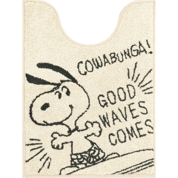 サーフィンデザインのスヌーピーがキュートな、アイボリーのトイレマットです。カラーがシンプルなので、どんなトイレにも合わせやすそう♪