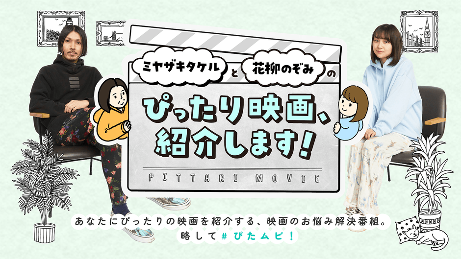 あなたにぴったりの映画を紹介する、映画のお悩み解決番組「ミヤザキタケルと花柳のぞみのぴったり映画、紹介します!」が3/23に配信決定!