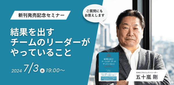 社長賞を4度も受賞した元NECプロジェクトリーダー・五十嵐剛氏新刊『結果を出すチームのリーダーがやっていること』発売記念【無料オンラインイベント】7月3日(水)19時より開催!