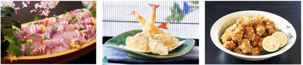 ◆お造りと握り寿司で楽しむ本まぐろ、更に、潮流の早い豊後水道で育ち、その日の朝に別府湾で水揚げされる鮮度抜群の地魚をお楽しみください。他にも全国区の人気を誇るご当地B級グルメまで、大分の美味しさを満喫するメニューでおもてなしいたします。
