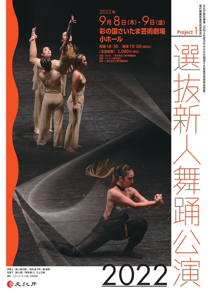 文化庁、一般社団法人現代舞踊協会主催、文化庁委託事業 「令和4年度次代の文化を創造する新進芸術家育成事業」現代舞踊新進芸術家育成Project1 選抜新人舞踊公演が2022年9月8日(木) ~ 2022年9月9日(金)に彩の国さいたま芸術劇場 小ホール(埼玉県さいたま市中央区上峰3-15-1)にて上演されます。