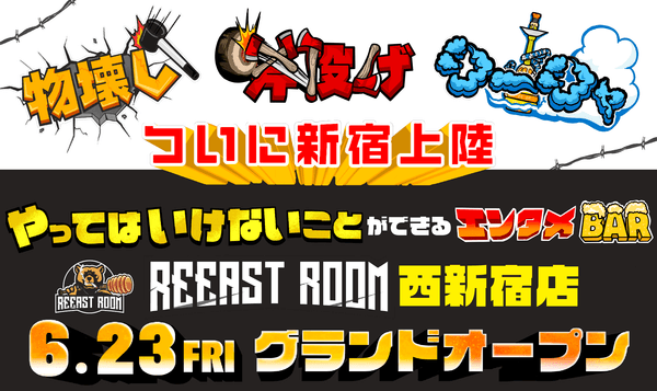 【物壊し&斧投げ】新感覚アミューズメント施設"REEAST ROOM"西新宿店が6月23日(金)にOPEN決定!