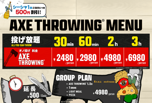 ◉日本斧投げ協会公式斧1本プレゼント+ 斧投げ30分無料