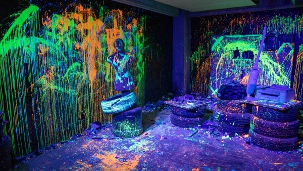 "NEON SMASH"では、暗闇の部屋の中で、ネオンカラーに光り輝く食器や小型家電を、バット等の武器を使用して思う存分壊すことができます。