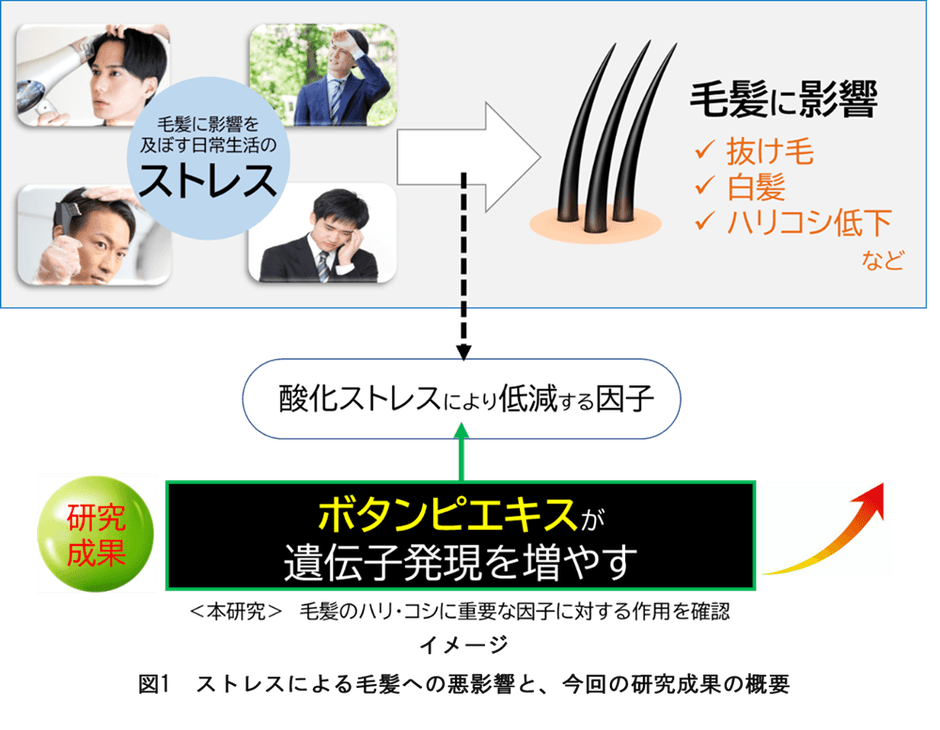 当社はこれまで、毛髪への悪影響の一つである「白髪」に対して、マイトリガーゼの発現を高める成分であるボタンピエキスとブラックリバースペプチド1の組み合わせによる白髪改善効果を確認してまいりました(※1)。