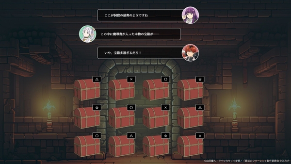 さらに本公演の特設サイトでは、本日よりお試し謎「魔導書が入った宝箱を見つけ出せ!」も公開いたしました。最深部にあるという魔導書を手に入れるべく、ミミックの洞窟に潜るフリーレン、フェルン、シュタルクの3人。謎を解き正しい宝箱を開けることが出来れば奥へと進むことができますが、間違った宝箱を開けるともちろんミミックに捕食されてしまいます。3人は無事にミミックだらけの洞窟でお目当ての魔導書を手に入れることが出来るのでしょうか。