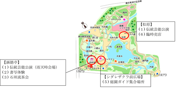 ※雨天の場合は、涵徳亭(かんとくてい)にて実施。各回開始20分前より定員70名、先着順で受付します。