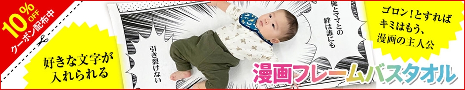 7月17日の「漫画の日」を記念して、赤ちゃんが漫画の主役になれる『漫画フレームバスタオル』を7月17日から7月23日までの1週間限定セールを開催いたします。このバスタオルは、自由に文字を入れることができるため、世界に一つだけのオリジナルアイテムとしてご利用いただけます。家族の思い出作りやギフトにぴったりなこのアイテムを、特別価格でお求めいただけるチャンスです。
