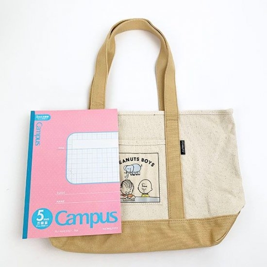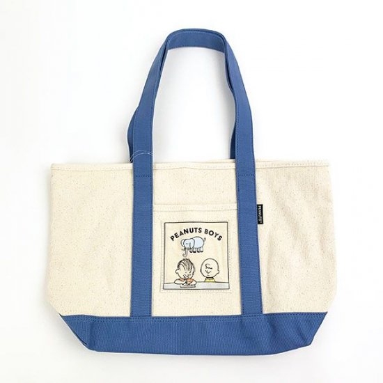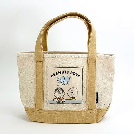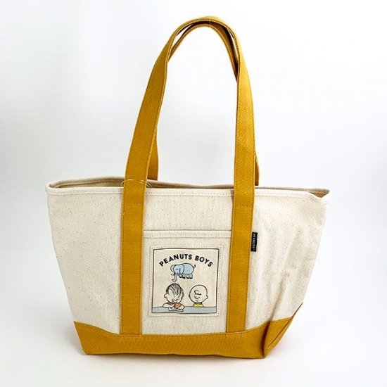 バイカラーがオシャレ♪チャーリーブラウンたちのワッペンも可愛いスヌーピートートバッグ