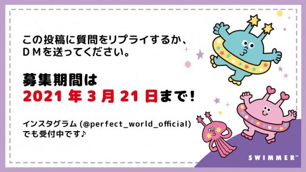 ご応募は、パーフェクトワールドトーキョーのツイッターか、インスタグラムから。