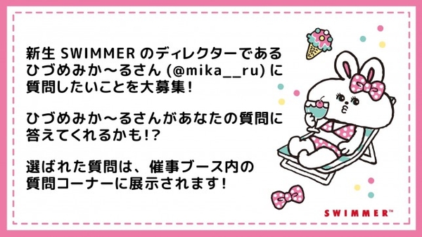 この企画、この4月にマルイで行われる、SWIMMER “オトナ” collection at マルイ のためなんです。選ばれると、展覧会みたいに、パネルになって展示されるかも、、、すごい!SWIMMERユーザーだった全ての皆さん!この機会に、ひづめさんになんでも聞いちゃいましょう!!