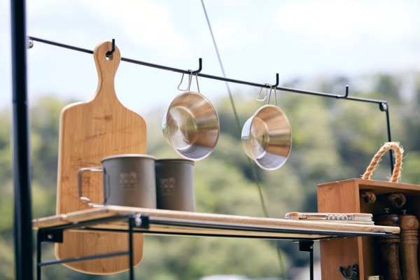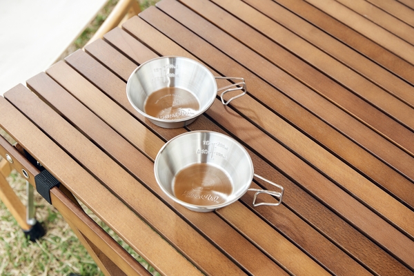 本製品は、熱伝導率に優れた冷めにくい性質のステンレス製の素材で作られており、お米などの温かい料理を入れるのに適したシェラカップ。さらに取っ手部分は、親指、人差し指、中指を使って、持ちやすさを追求したハンドルになっており、アウトドアの様々なシーンでの活躍が期待できます。