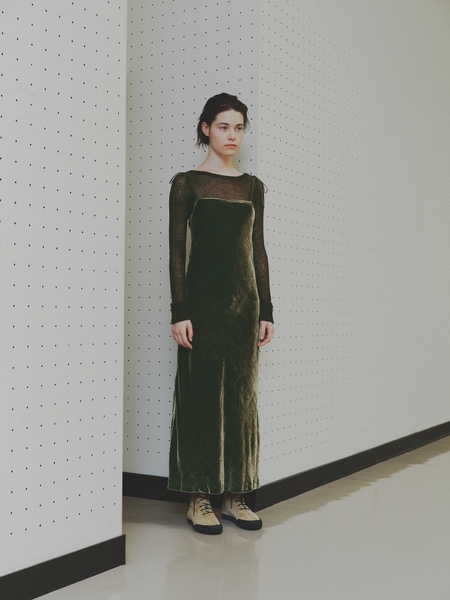 シルク混のベルベット生地を贅沢にバイヤス使いすることで、タイニィながらも動きやすさを叶えたキャミドレス。