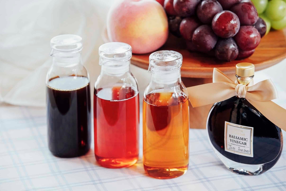 朝食には、それぞれの料理の味わいに合わせて、葡萄や桃など異なる原料から造られるビネガーを使用します。組み合わせるフルーツとの相性を考え、山梨県産の葡萄のみを使用して造られた国産の熟成ワインビネガーです。夏は暑さから食欲が減退しやすい季節ですが、ビネガーに含まれるクエン酸には疲労回復や食欲増進に効果があると言われています。(*2)また、フルーツにビネガーを組み合わせることで、ビタミンやミネラルが豊富なフルーツのエキスが引き出され、フルーツの果実味や甘味がより一層引き立ちます。