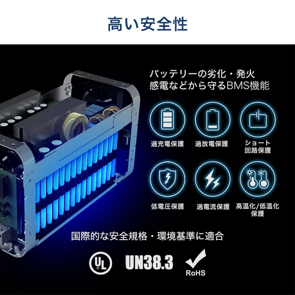 ・圧巻の大容量2,258Wh / 定格出力 2,000W(最大4,000W)