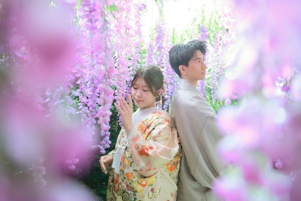 一面に咲き誇る藤の花に囲まれた幻想的な空間。(スタジオエイト名古屋店)