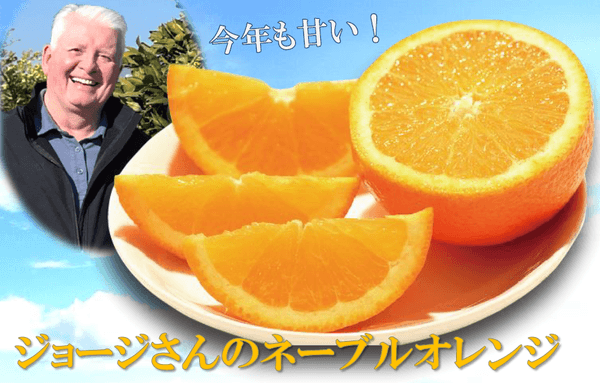 昨年“甘くておいしい”とご好評いただいた「ジョージさんのネーブルオレンジ」。アメリカの「シトラスベルト」というオレンジ栽培に適した一帯にある園地にて、ジョージさんが徹底した生産管理を行い育て上げました。今年は生育環境も良く非常に食味の良いオレンジに仕上がっています。