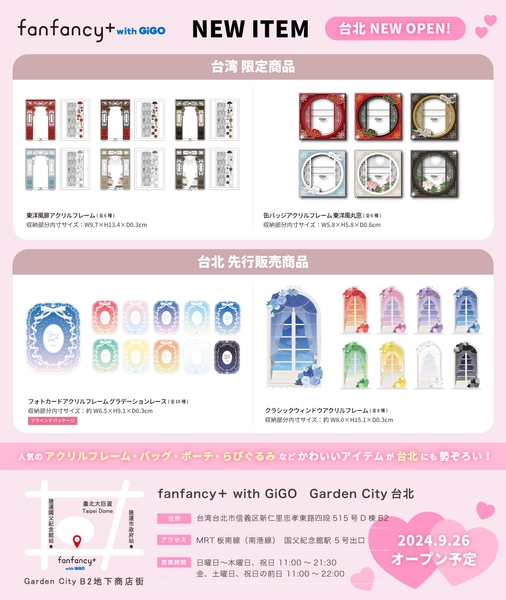 株式会社GENDA GiGO Entertainment(本社:東京都港区 代表取締役社長:二宮 一浩 以下「当社」)の台湾現地法人、株式会社GiGO台湾(本社:台北市松山區 董事長:松浪 康博、以下「GiGO台湾」)は、海外初の出店となる「fanfancy+ with GiGO」を台湾・台北市に、9月26日(木)にオープンいたします。