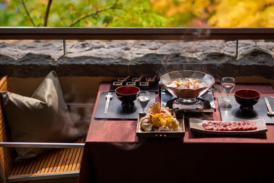 長野県・軽井沢の滞在型リゾート「星のや軽井沢」は、2021年9月9日~11月30日の期間、紅葉を楽しみながら、免疫力を高める「発酵きのこ鍋」を提供します。腸内環境を整える「菌活」(*1)で注目されているきのこと、免疫力を高めると言われる発酵食品(*2)を組み合わせました。信州ならではの発酵食品を加えた出汁に、きのこや生薬を入れることで、素材の旨味と栄養が溶け出した滋養豊富な鍋です。客室のテラスから紅葉を眺めながら、信州産の日本酒とともに堪能できます。