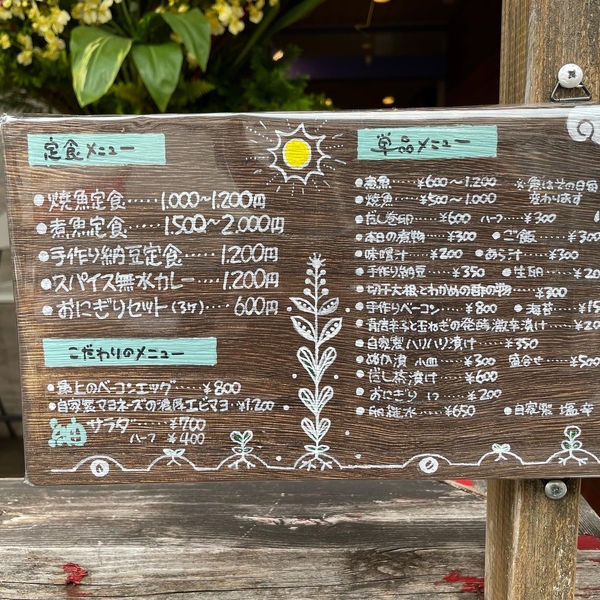 定食にはご飯、小鉢2種、漬物、だし巻卵スープ(味噌汁orあら汁)が付きます。