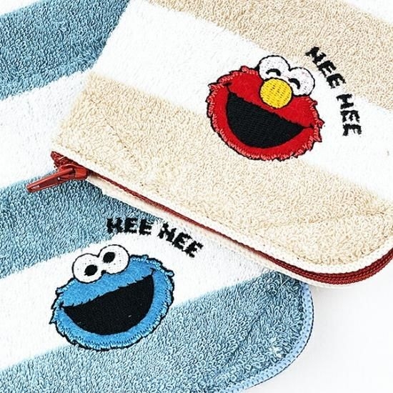 『タオルのふりしてコソッとポーチ』でお馴染みの人気アイテム『どっとポーチ』に、笑顔のエルモとクッキーモンスターのイラスト刺繍がキュートなデザインが仲間入りしました。