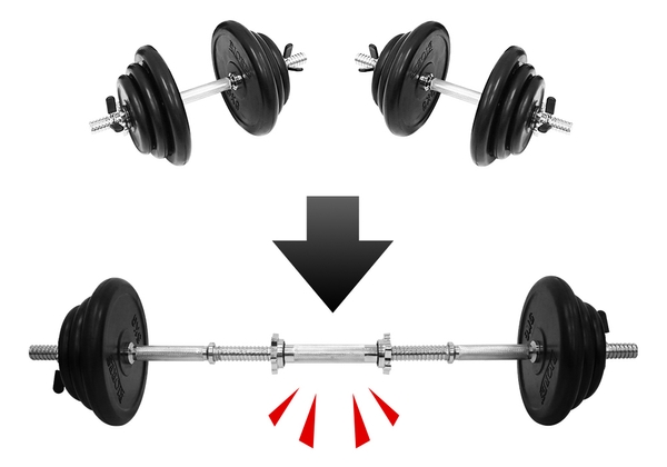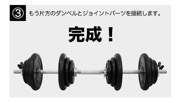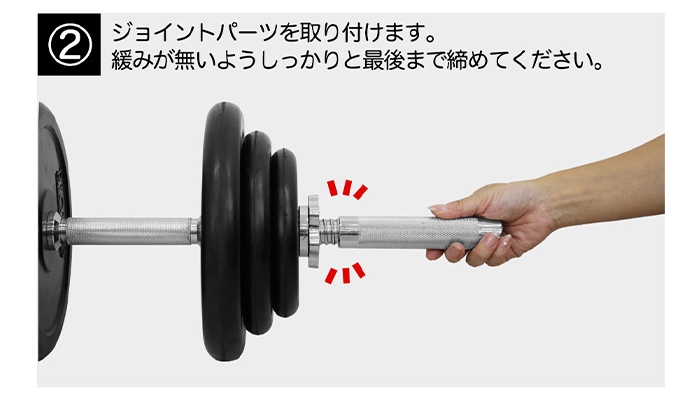 ジョイントパーツをつなげることでダンベルがバーベルに。トレーニングにも幅がでます。