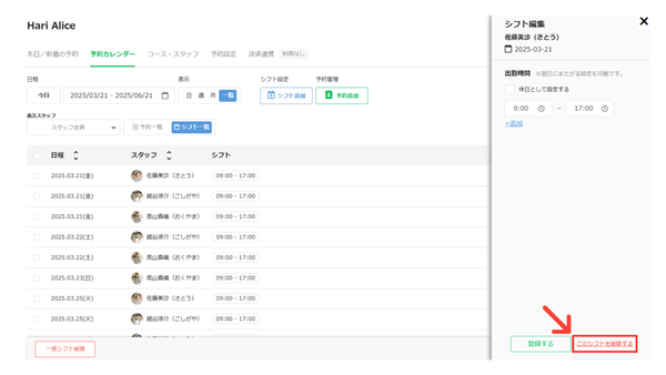 サロン予約機能において、特定日のシフトを個別に削除できる機能が追加されました。