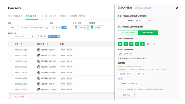 以前は既存シフトより短い時間で上書きを行うと反映されない問題がありましたが、本アップデートにより正確にシフト登録が行えるようになります。