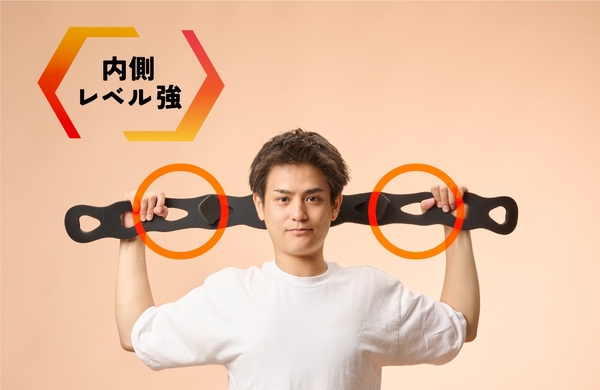指を掛けられる穴があるため、握力など余分な力を入れずにストレッチが可能です。身体の状態に合わせて指を掛ける穴の位置を変えることで、ストレッチの強度を調整することができます。