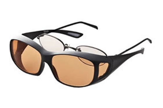 遮光眼鏡のレンズカラー選定に迷われて購入したけれど、家の中と外では違う見え方になり、実際使用してみないと解らないとのお困りのお声からメガネの上から掛けられるテスト用遮光オーバーグラスの貸し出しサービスも始めました。
