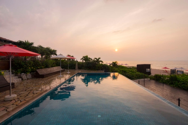 サウナの後はビーチに隣接するプールを貸し切り、整い時間を堪能できます。通常のサウナでは温まった身体を冷やすために水風呂を利用しますが、本アクティビティでは隣接するプールへ入ります。目の前に広がる絶景を楽しみながら贅沢な時間を過ごすことができる場所です。