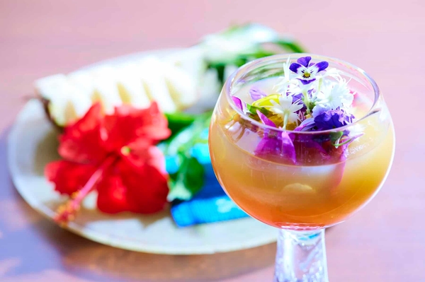 特徴4 南国らしいフルーツを使用したフラワーモクテル提供