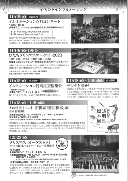 「Hitachi Starlight Illumination 2023」(主催:(公財)日立市民科学文化財団)が、11月18日(土)から、日立シビックセンター新都市広場において開催されます!