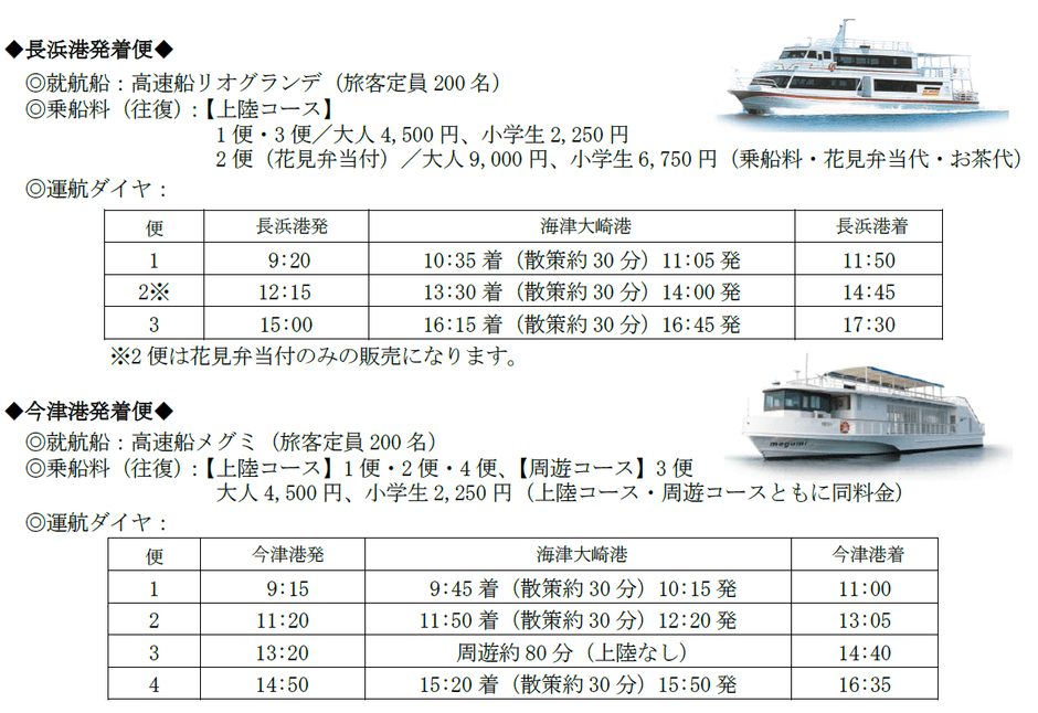 ◎長浜港発着便 受付(長浜港) TEL:0749-62-3390(9:00~16:30)