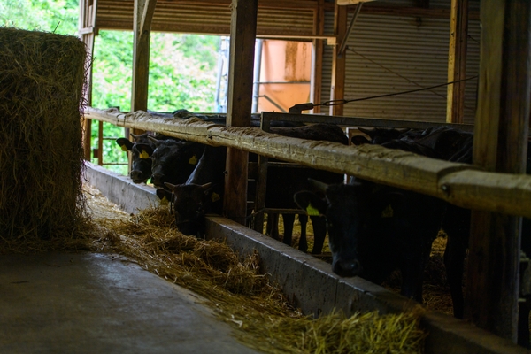 今回お伺いした牛舎に着いてまず驚いたのはふかふかの稲わらや糠が敷き詰められた清潔な環境。