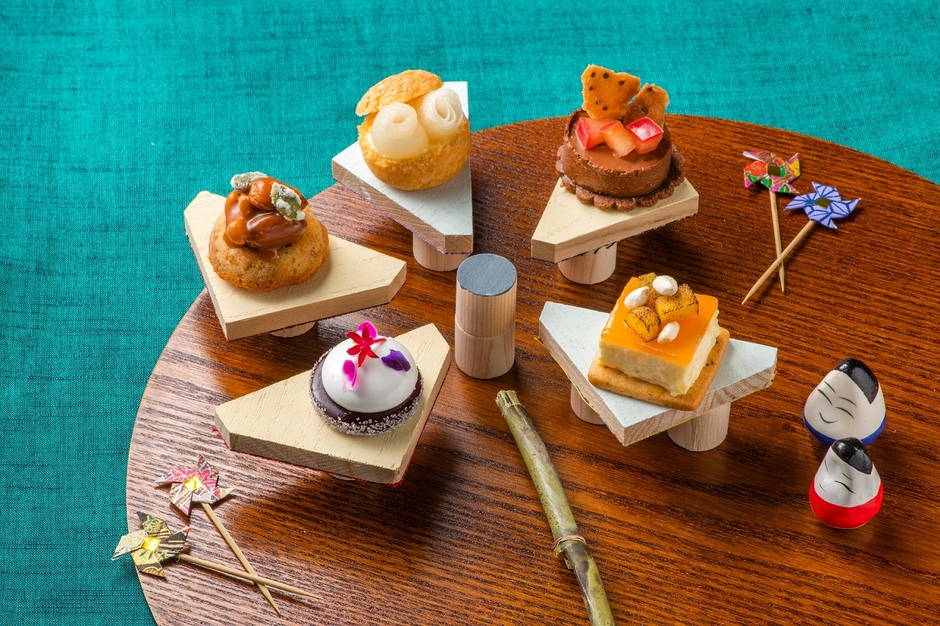 車内では、当ホテルが開発したオリジナルのスイーツセットを楽しめます。スイーツが盛られる器は、地域の縁起物をモチーフにしており、福島の美味しいものを食べて幸せになってほしいという想いが込められています。