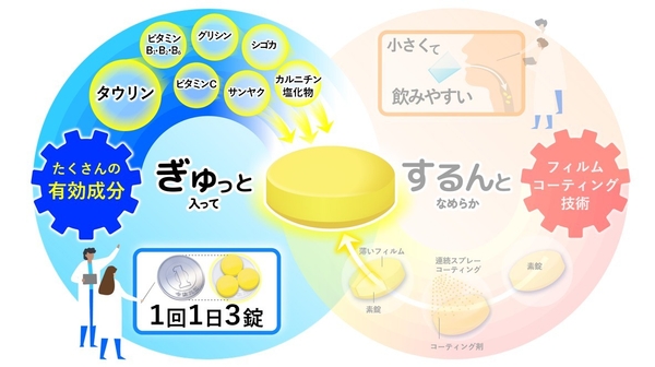 リポビタンDX 小さな錠剤に秘めた製剤技術―― “ぎゅっと”詰めて、“するんと”飲み込めるまで