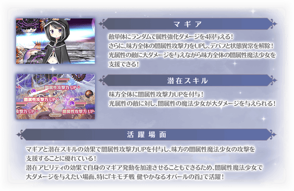 ・魔法少女やメモリアのスキル内容・効果は事前告知の上、変更する場合があります。