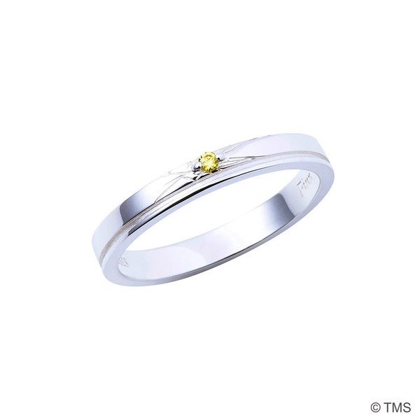 トップのリングにはラヴ&ピースの柄を取り込み、もう一方のリングにはイメージカラーストーンをセットした、