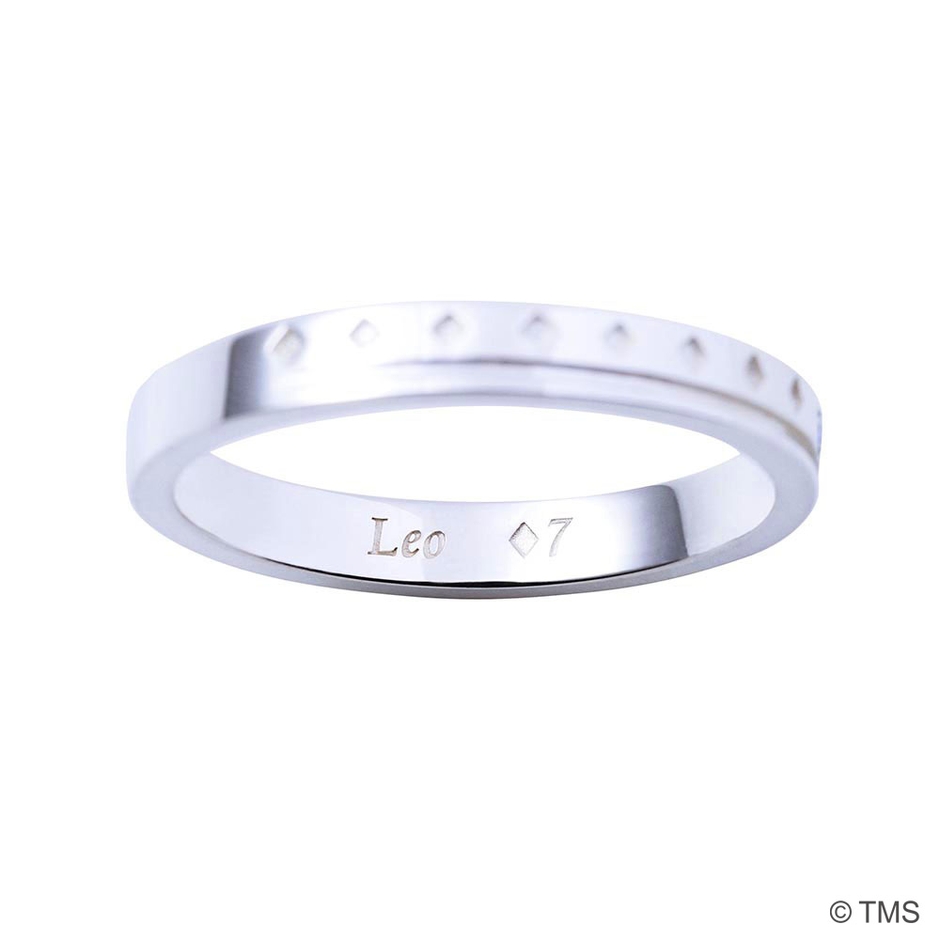 平打ちタイプのリングにレオのファッションアイテムのデザインを取り込み、イメージカラーストーンをセット。