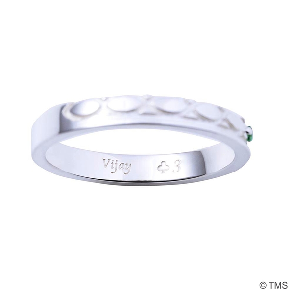 平打ちタイプのリングにグリーングリーンのマークを取り込み、イメージカラーストーンをセット。