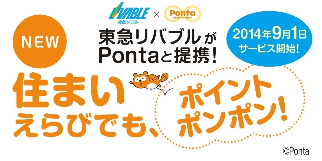 東急リバブル株式会社(代表取締役社長:中島 美博、本社:東京都渋谷区、以下、東急リバブル)と、共通ポイントサービス「Ponta(ポンタ)」を運営する株式会社ロイヤリティ マーケティング(代表取締役社長:長谷川 剛、本社:東京都渋谷区)は、本日2014年9月1日(月)より、東急リバブルが販売受託する新築マンション・新築戸建のモデルルームへの来場や購入によって、Pontaポイントがたまるサービスを開始いたしましたので、お知らせいたします。