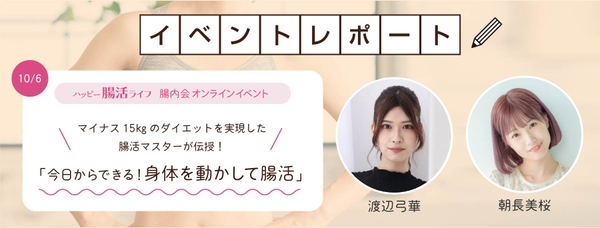 10/6に好評のうちに終了したオンラインイベント「今日からできる!身体を動かして腸活」の様子はこちらからチェック。